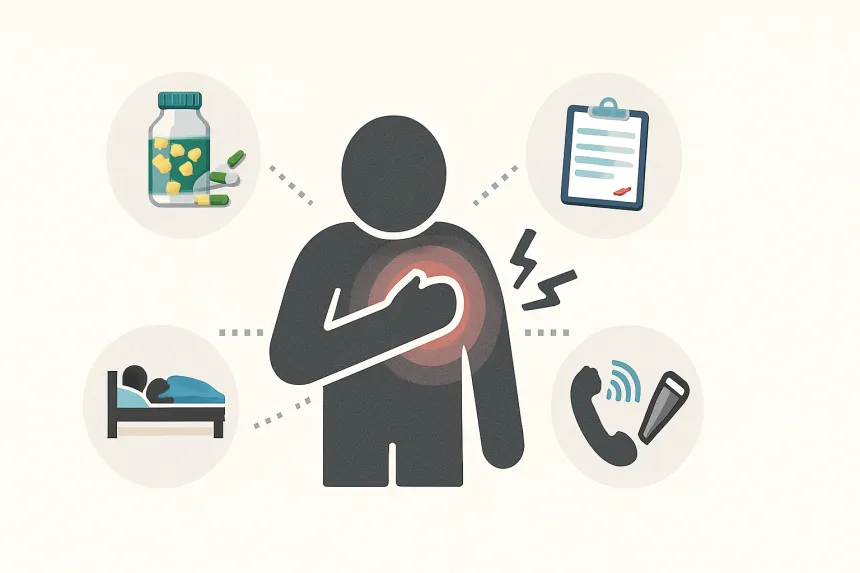 가슴이 뻐근한 증상이 나타났다고 해서 무조건 응급 상황은 아닙니다. 하지만 어떤 상황에서든 올바른 대응이 중요합니다. 아래 방법들을 통해 증상이 심하지 않다면 우선 스스로 점검하고 조절해볼 수 있습니다.