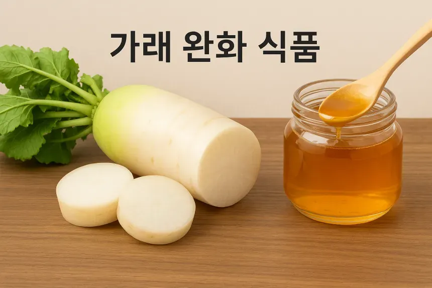 소염 작용과 가래 배출 효과가 있는 무는 기관지 건강에 좋은 대표적인 채소입니다. 꿀무차로 먹는 것을 추천합니다.