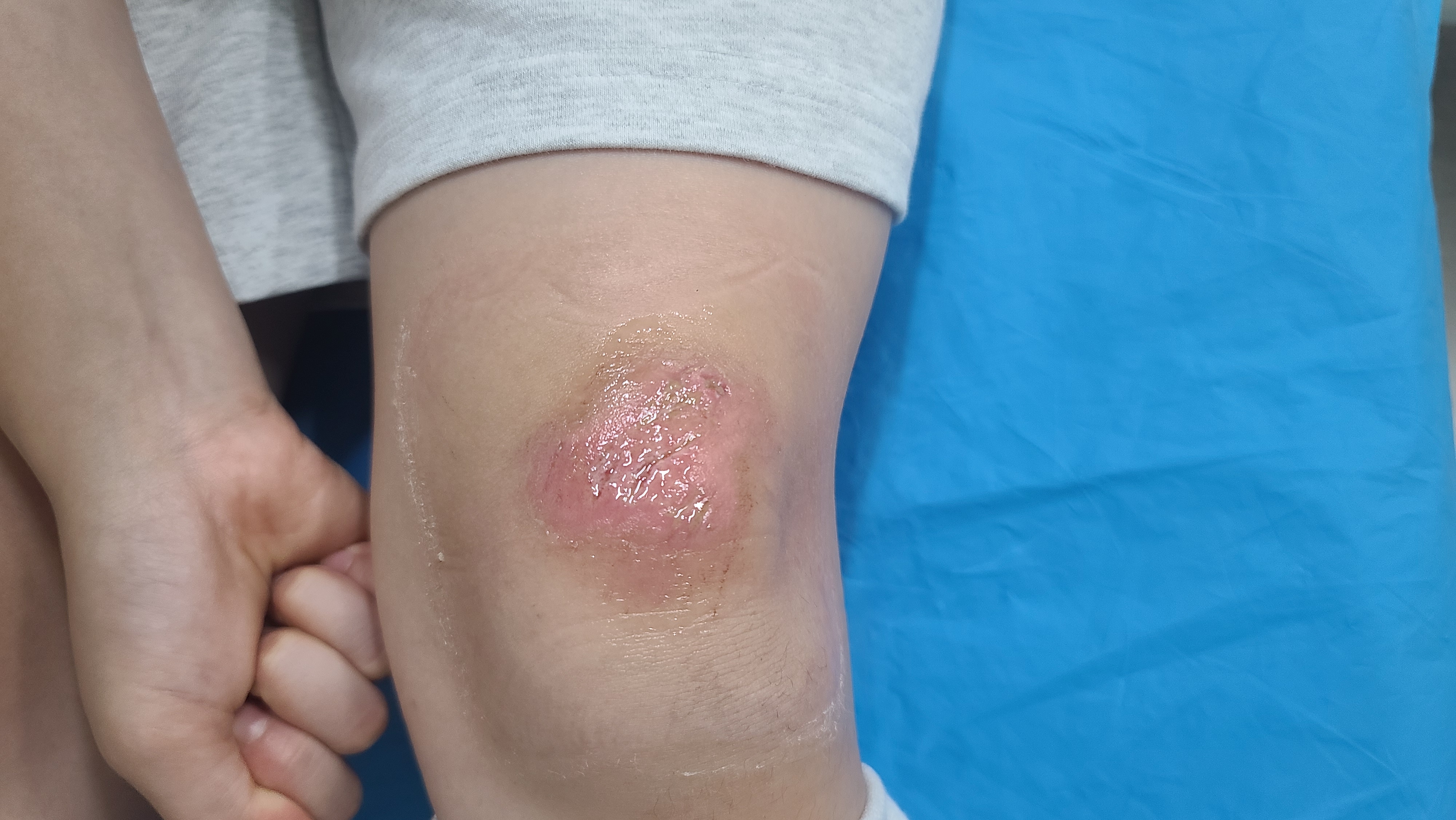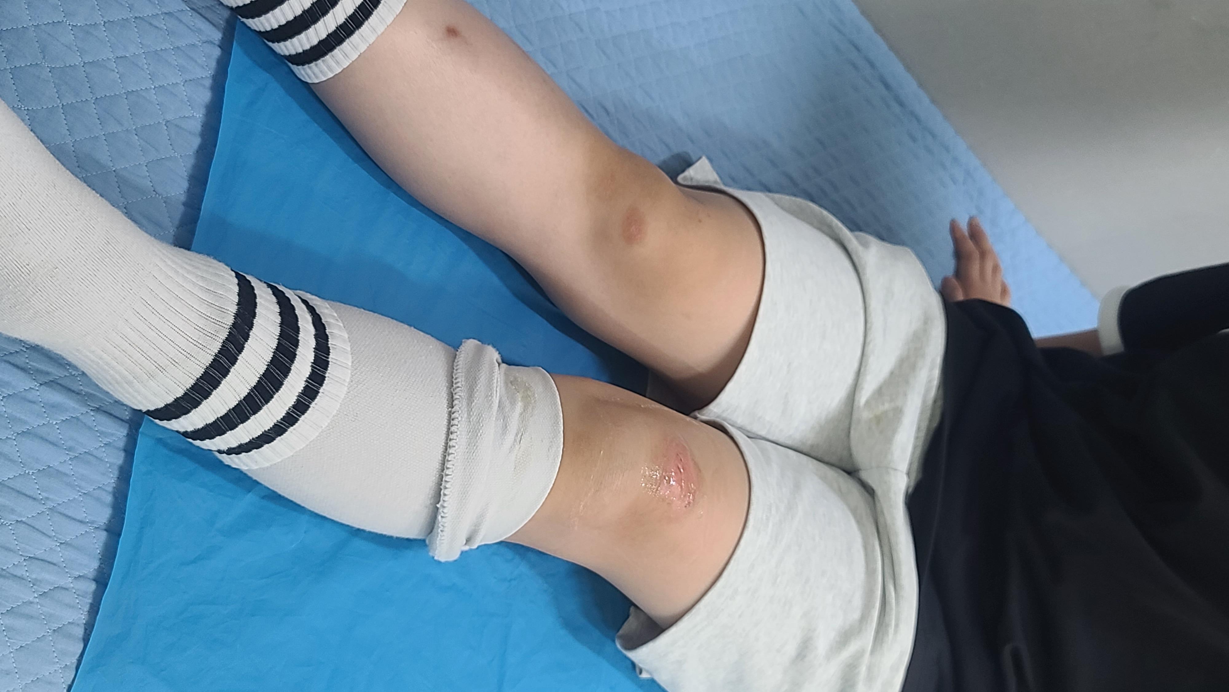 저희애는 달리기하다가 남자애랑 부딪혀서 관절도 걱정되서 정형외과를 찾았습니다. x-ray 찍고 소독하고 듀오덤 붙인 후 압박밴드 착용했습니다.좀 심한 상처라 일주일 정도는 압박밴드에 진물이 뭍을 정도로 많이 났었어요. 폼 붙일때 좀 늘려서 잘 붙이면 진물이 흘러 넘치진 않을거 같아요.