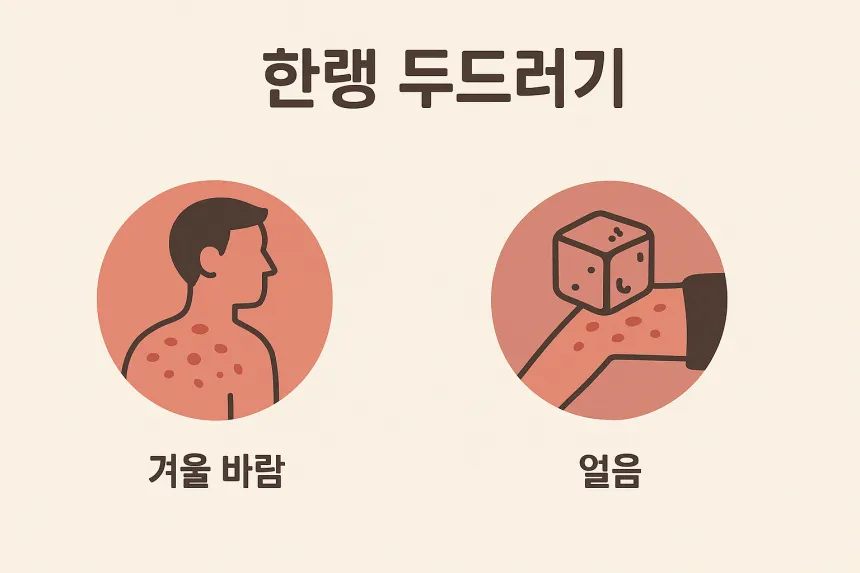차가운 공기나 물에 노출되었을 때 피부에 두드러기가 생기는 형태예요. 겨울철에 특히 주의해야 해요.