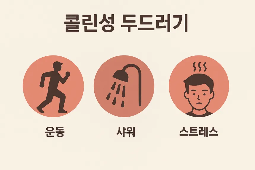 콜린성 두드러기는 운동, 뜨거운 물 샤워, 매운 음식처럼 체온이 올라갈 때 발생해요. 좁쌀 같은 붉은 두드러기와 가려움이 주로 나타나죠.