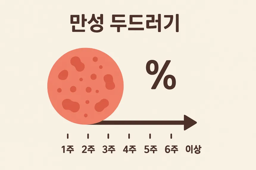 6주 이상 반복되는 두드러기를 만성 두드러기라고 해요. 원인을 명확히 찾기 어려운 경우가 많고, 스트레스나 면역 문제와 연관될 수 있어요.