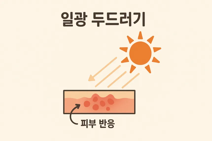 자외선에 노출되었을 때 피부에 두드러기처럼 발진이 생기는 드문 유형이에요.