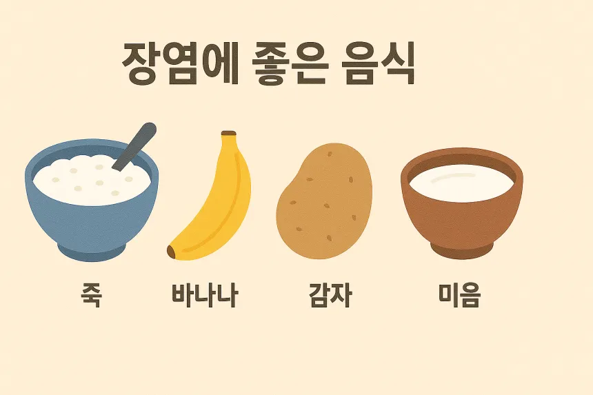 A. 기름지고 자극적인 음식은 피하고, 죽, 미음, 바나나, 감자, 구운 빵처럼 부드럽고 수분이 많은 음식을 추천해요. 탈수 방지를 위해 수분 섭취도 중요하죠.