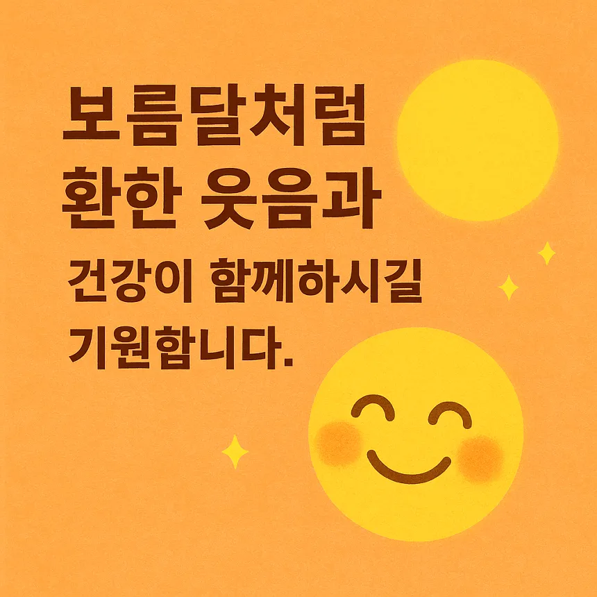 - 보름달처럼 환한 웃음과 건강이 함께하시길 기원합니다.