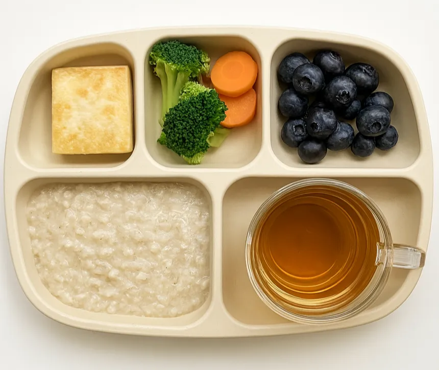 • 귀리죽 (귀리+소량의 현미, 부드럽게 끓임) → 혈당 안정 + 장 건강