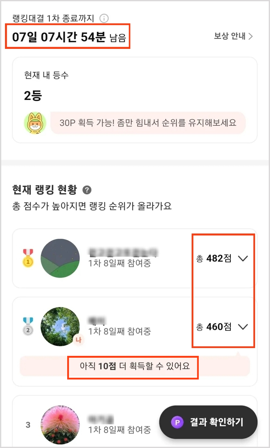 2025년 8월 29일 업데이트를 통해 도입된 랭킹대결은 챌린지 참여자들끼리 활동량을 비교하여 순위를 매기고, 추가 포인트까지 획득할 수 있는 기능입니다.