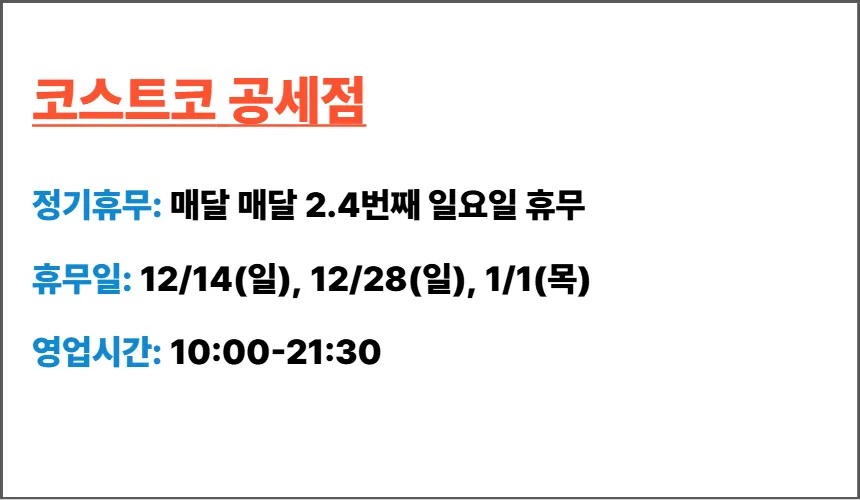 코스트코 2025년 12월 영업시간 안내