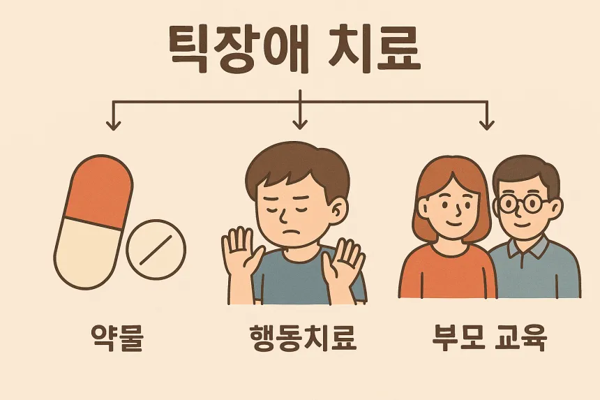 - 행동치료: 습관 역전 훈련(HRT)이나 인지행동치료(CBT) 등 틱을 의식하고 제어하는 훈련이 효과적입니다.
