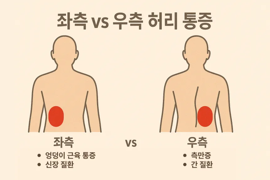 허리 근육통은 대부분 양쪽에 나타나지만, 특정 활동에 의해 한쪽 허리 근육만 과도하게 사용되면 좌우 비대칭 통증이 생기기도 합니다. 예를 들어 무거운 가방을 한쪽으로만 매는 습관 등에서 유발됩니다.