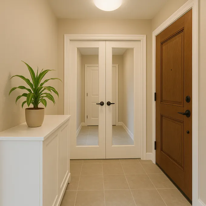 - 거울은 정면 배치 금지 : 현관문을 열었을 때 거울이 정면에 있으면 기운이 반사되어 나간다는 풍수적 해석이 있습니다.