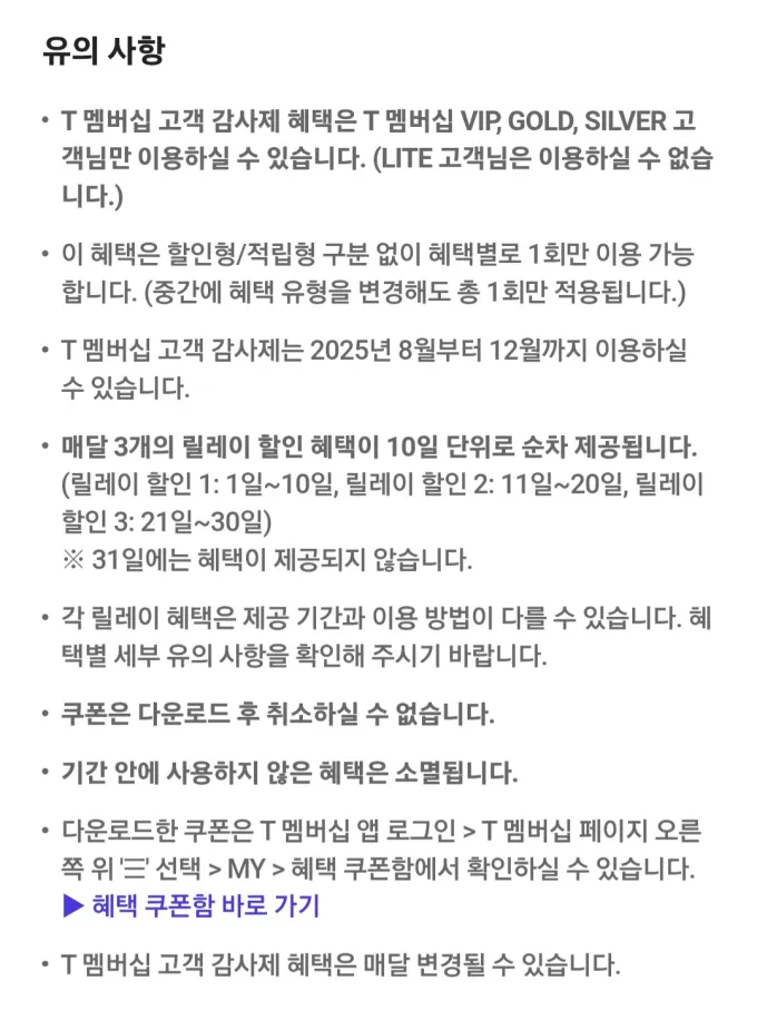 - T멤버십 앱에서 쿠폰 다운로드 필수