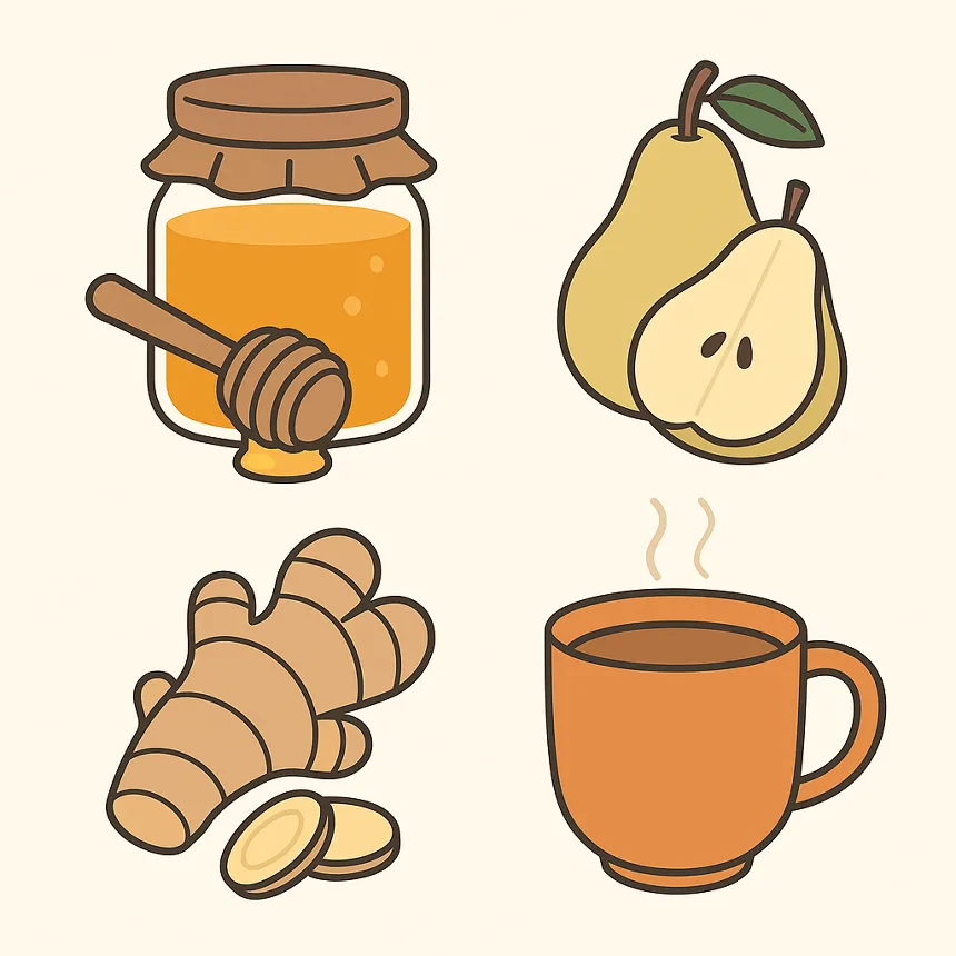 죽, 국물요리, 꿀차 등은 목을 부드럽게 감싸줘요. 아이스크림은 잠깐은 좋지만 장기적으로 악화시킬 수 있어요.